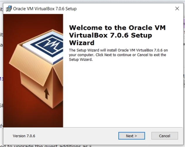 - Dwukrotnie kliknij pobrany program Oracle Virtualbox. Zaczekaj na okno powitalne instalatora.