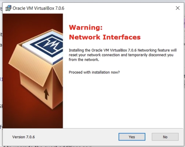 - Pojawi się informacja dotycząca chwilowych zmian w ustawieniach sieciowych. Kliknij przycisk Yes.