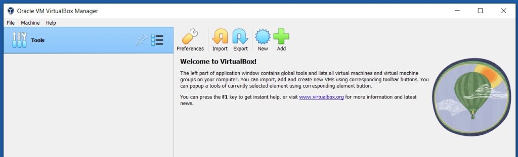 Okno programu Oracle Virtualbox wygląda tak, jak na załączonym obrazku: